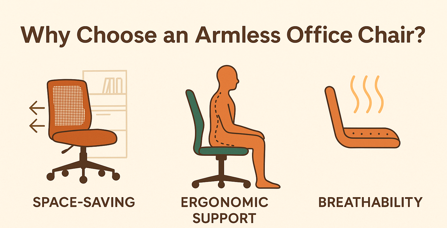 Armless office chairs promote flexibility and a lighter aesthetic, while traditional ones focus more on arm support and bulkier build. For compact or minimalist setups, armless chairs are often the smarter choice.