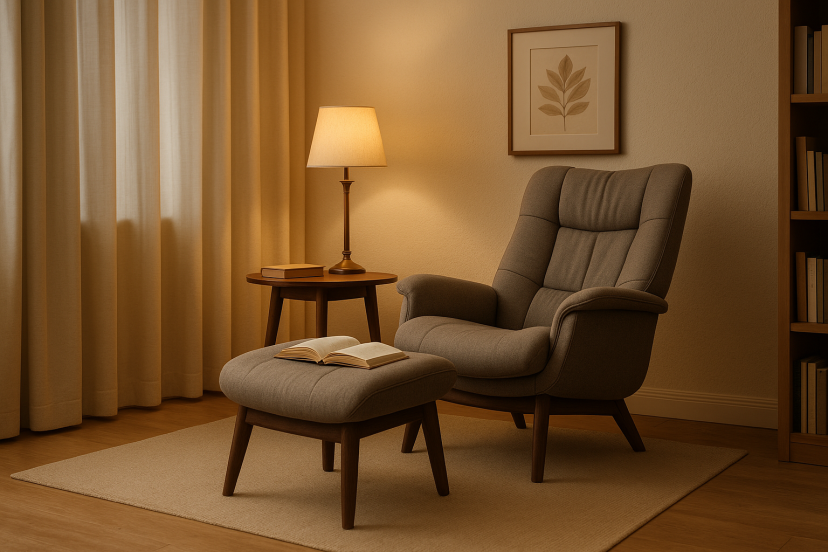 Recliners give you total-body support. Modern models feature quiet recline mechanisms, padded lumbar zones, and supportive footrests. They’re perfect for nighttime readers who want to relax without compromising posture.